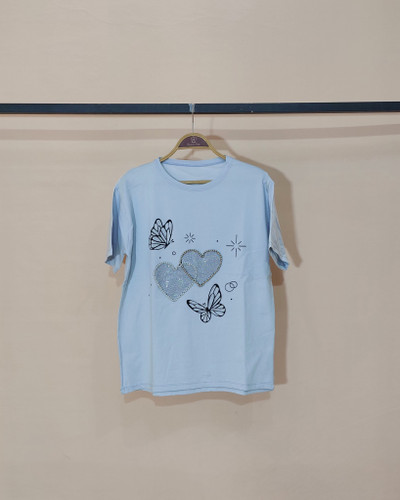 تیشرت زنانه نخ پنبه با نگین و مرواریدفری سایز